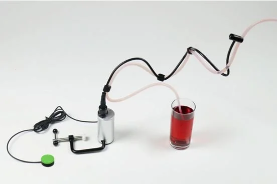 Die motorisierte Variante wird auf Knopfdruck oder über Sensorsteuerung aktiviert und dosiert Flüssigkeit und pürierte Nahrung individuell.